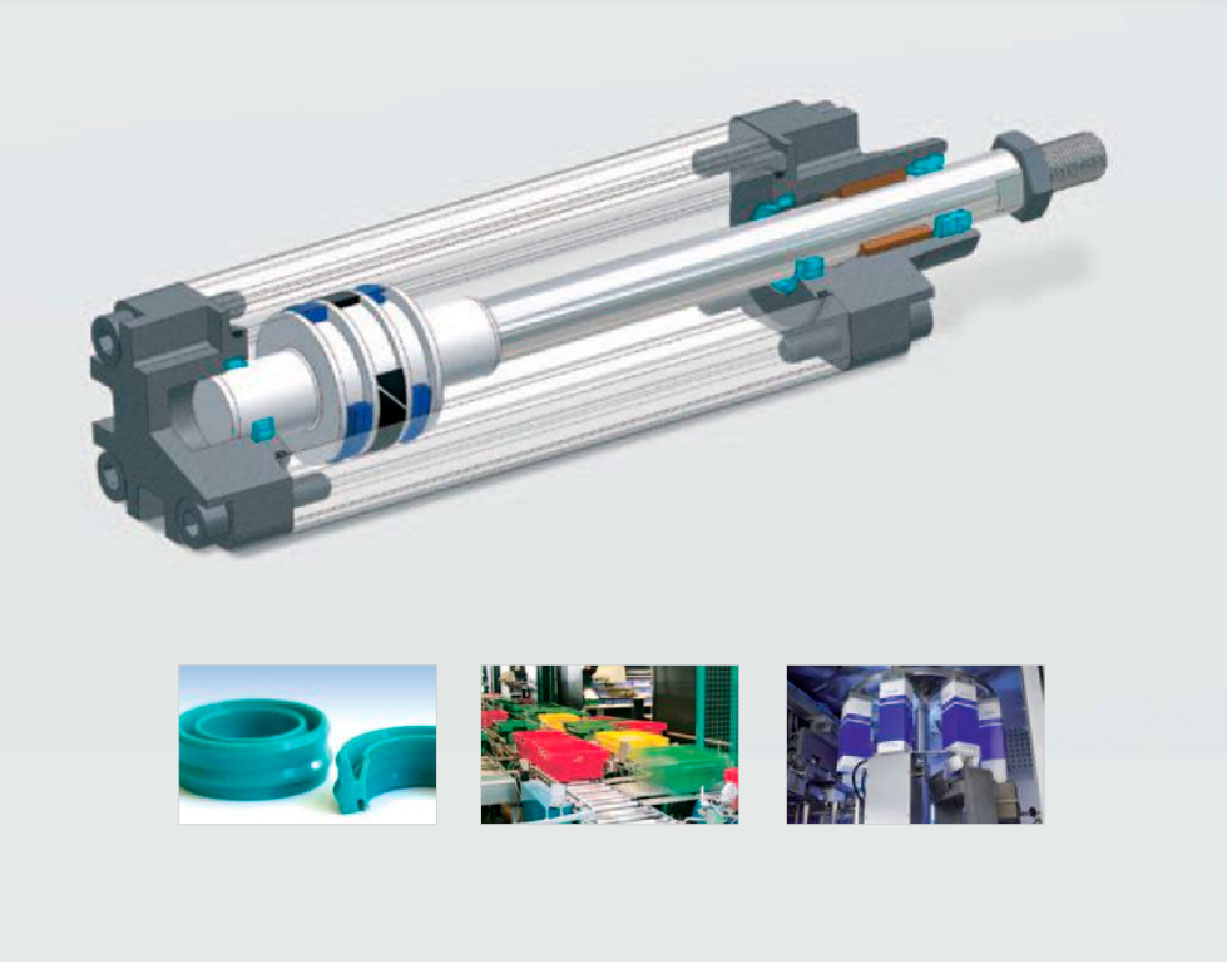 (Turcon® PTFE / polietileno Zurcon® com anel-O NBR ou FKM) fornecem soluções adequadas para aplicações pneumáticas especiais onde se dá grande importância ao mínimo atrito estático e dinâmico, baixos efeitos de grudar-escorregar, alto desempenho de velocidade e ampla faixa de temperaturas.
